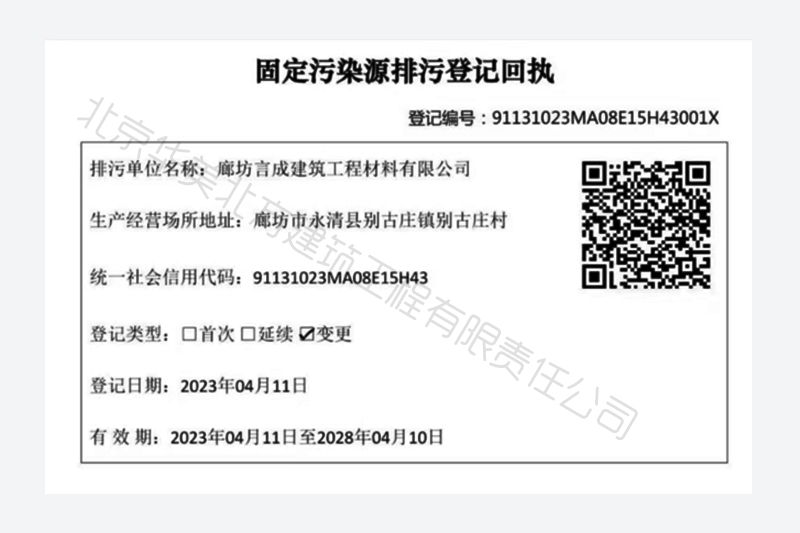 固定污染源排污登记证书